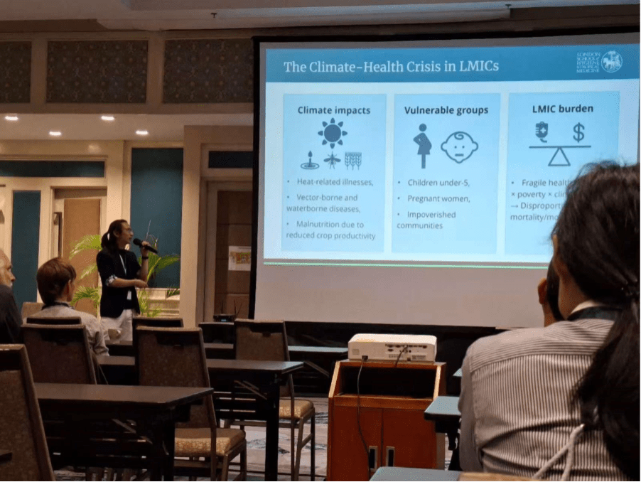 Ziyi Lin, a research fellow at the London School of Hygiene & Tropical Medicine, presented research on climate change and child health at IHEA 2025 in Bali.