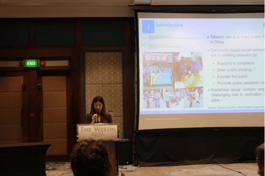 Fengyi Sun, a master’s student (Class of 2023) at Wuhan University, presented Motivating Social Workers for Smoking Cessation: A Discrete Choice Experiment in Urban China.